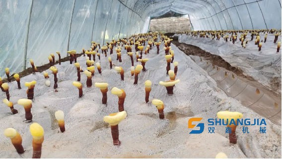 大棚里的灵芝撑起“雨伞”。人民网胡雨松/摄